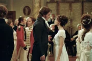 England, Ende des 18. Jahrhunderts. Mrs. Bennet verfolgt für ihre fünf Töchter nur ein Ziel: alle standesgemäß zu verheiraten. Jedoch fallen der scharf- wie eigensinnigen Elizabeth gute Gründe ein, sich ihrer Mutter zu widersetzen. Als die wohlhabenden Junggesellen Mr. Darcy und Mr. Bingley das nahegelegene Herrenhaus beziehen, sieht Mrs. Bennet die große Chance für sich und ihre Töchter gekommen. - Mr. Darcy (Matthew Macfadyen) zeigt zunächst wenig Interesse an Elizabeth. (Lizenzende: 30.09.2028)