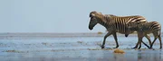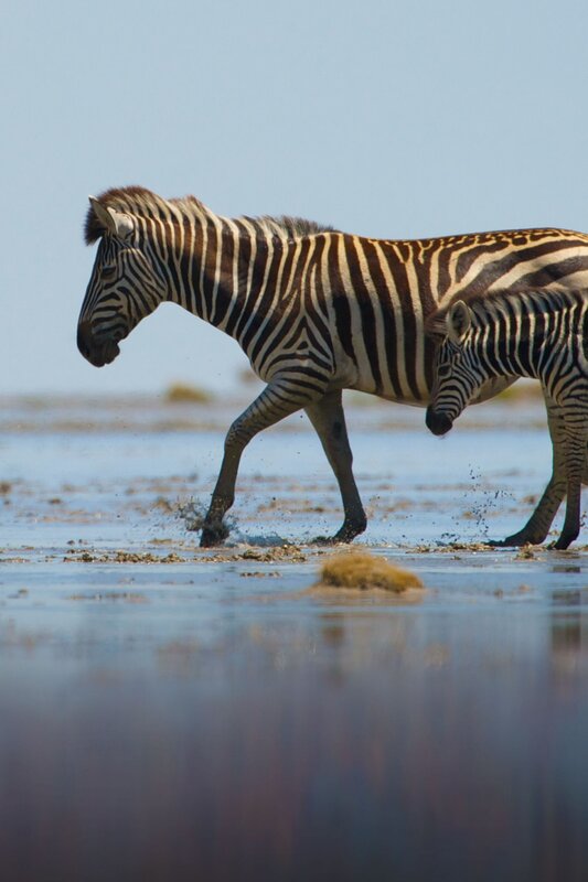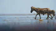 Während der Trockenzeit leben die Zebras am Boteti-Fluss, wo sie reichlich Gras und Wasser haben. Allerdings lauern im Fluss Krokodile, und auch Löwen sind nicht weit. Sobald sich über der Kalahari die Gewitterwolken zusammenbrauen und die Regenzeit beginnt, fängt eine der größten Tierwanderungen im Süden Afrikas an. 20.000 Zebras ziehen in die Makgadikgadi-Salzpfannen, wo seit Urzeiten ihre Fohlen auf die Welt kommen.