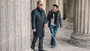 Die Blindenlehrerin Sissi (Alwara Höfels) verlässt mit dem erblindeten Stahlfabrikant Theo Olsson (Peter Haber) das erste Mal sein Haus.Bild: © HR/Degeto/Hendrik Heiden