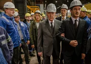 Sissi (Alwara Höfels) hat es geschafft: der erblindete Olssen (Peter Haber, M) lässt sich von seinem Sohn (Sönke Möhring, r) durch die Produktionshalle seines Unternehmens führen.Bild: © ARD Degeto/Hendrik Heiden