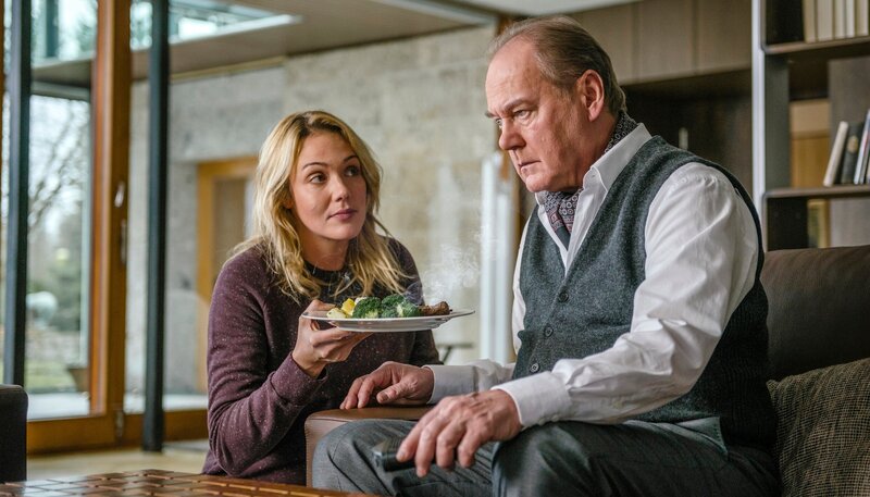Die Blindenlehrerin Sissi (Alwara Höfels) soll sich um den erblindeten Stahlfabrikant Theo Olssen (Peter Haber) kümmern.Bild: © ARD Degeto/Hendrik Heiden