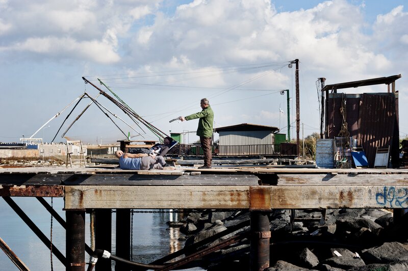 Sabrina (Giulia Elettra Gorietti, l.) verlässt das Hotel gemeinsam mit dem jungen Gangster Spadino Anacleti (Giacomo Ferrara, r.), der ihr hilft, die Leiche von Jelena (Yulia Kolomiets, M.) verschwinden zu lassen.