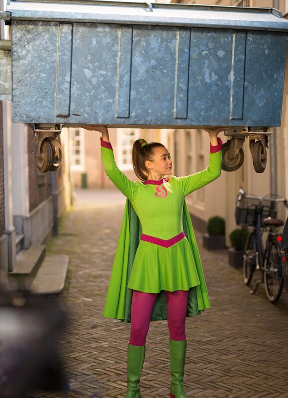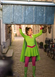 Als Superheldin mit Superkräften kann Josie mühelos einen Container stemmen.Bild: © ZDF/PVPictures by Jaap Vrenegoor
