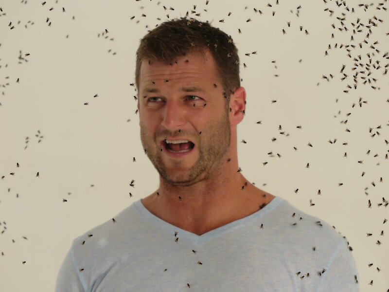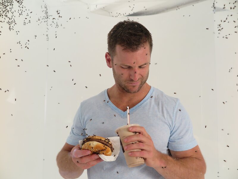 Der Astrophysiker Hakeem Oluseyi überlegt im Labor von Professor Greg Sword an der Texas A&M University, warum er zugestimmt hat, von Heuschrecken geplagt zu werden.