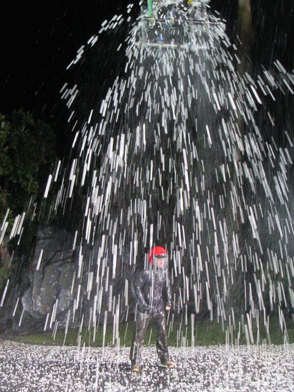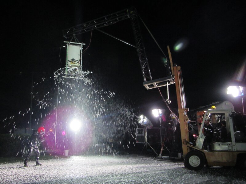 Der harte Kerl Terry Schappert überlebte Stürme und strömenden Regen und übersteht nun einen Hagelsturm in Hollywood, um herauszufinden, wie die Stürme im Buch Exodus ausgesehen haben könnten.
