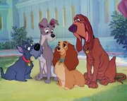 Die charmante Cockerdame Susi lebt in einem liebevoll behüteten Zuhause. Als allerdings eines Tages Tante Sarah mit den heimtückischen Katzen Si und Am zum Babysitten kommt, sind für Susi die harmonischen Zeiten vorbei. Sie reißt aus und trifft den frechen Vagabunden Strolch. Bei einem unvergesslichen romantischen Spaghettiessen kommen sich die beiden näher und gemeinsam mit Strolch lernt Susi das abenteuerliche und ungebundene Leben auf der Straße kennen. Doch auf Susi warten ein Zuhause und eine Familie, die sie beschützen muss. Auf den ersten Blick haben Susi, eine vornehme Cockerspaniel-Dame, und der Straßenhund Strolch nur wenig gemeinsam. Als Susis Besitzer aber ein Baby bekommen, fühlt diese sich allein gelassen und wendet sich Hilfe suchend an Strolch. Der zeigt ihr das abenteuerliche und ungebundene Leben auf der Straße. Im Hinterhof eines italienischen Restaurants kommt sich das Hundepaar schließlich näher. Doch auf Susi warten ein Zuhause und eine Familie, die sie beschützen muss.