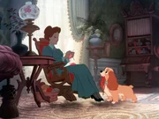 Die zeitlose Liebesgeschichte der Cocker-Dame Lady und des sympathischen Stra?enk÷ters Strolch. Ein gef'hl- und humorvolles Zeichentrick-Abenteuer, das mit seinen detailreichen Hintergr'nden und der stimmungsvollen Atmosph"re der eleganteste Film unter Disneys sp"teren Produktionen ist. Die selbstironische Grundhaltung tr"gt dabei auch allzu s'?liche Szenen. Die bedeutende Jazz-S"ngerin Peggy Lee schrieb die Songs und singt im Original vier Rollen selbst. H÷hepunkte sind die "klassische" Liebesszene im Hinterhof einer Trattoria und das mitleiderregende Hunde-Asyl. Disney erprobte erstmals die M÷glichkeiten des breiten CinemaScope-Formats; heutige Kopien des Films und die Videofassung geben allerdings nur die H"lfte des urspr'nglichen Bildes wieder (Lex. des Internat. Films).