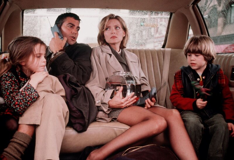Weil sich sowohl Jack (George Clooney, li.) und Maggie (Mae Whitman, Mi.) als auch Melanie (Michelle Pfeiffer, re.) und Sammy (Alex D. Linz, Mi.) verspäten, findet der Schulausflug ohne die Kinder statt. Nun haben Jack und Melanie ein großes Problem ...
