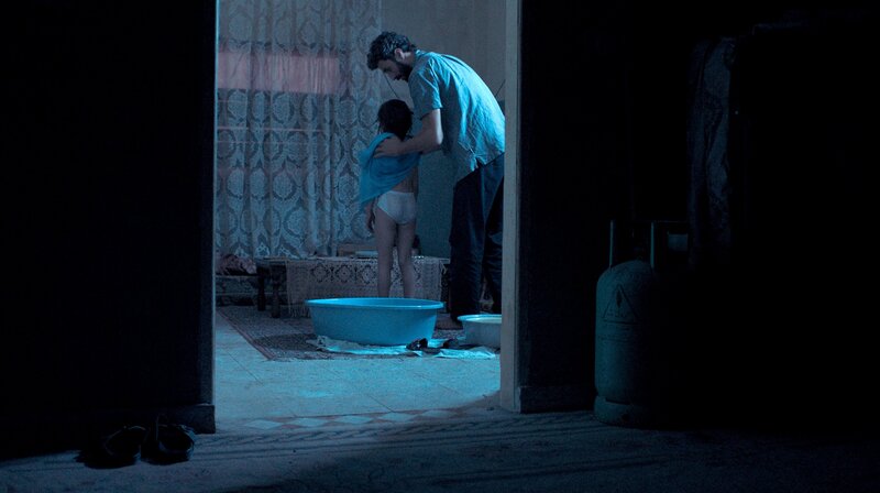SWR TALA'VISION, am Mittwoch (21.01.26) um 01:00 Uhr im SWR. Gefangen in einer von Krieg zerrütteten Welt, mit der Hoffnung, eines Tages auf dem Fußballfeld der Nachbarschaft spielen zu können, findet die achtjährige Tala Trost und Freiheit in einem verbotenen Fernseher. Doch dieser Fernseher bringt sie in ein Spiel um Leben und Tod. Taher badet seine Tochter Tala (Aesha Balasem und Ziad Bakri).Bild: © SWR/Filmakademie BW