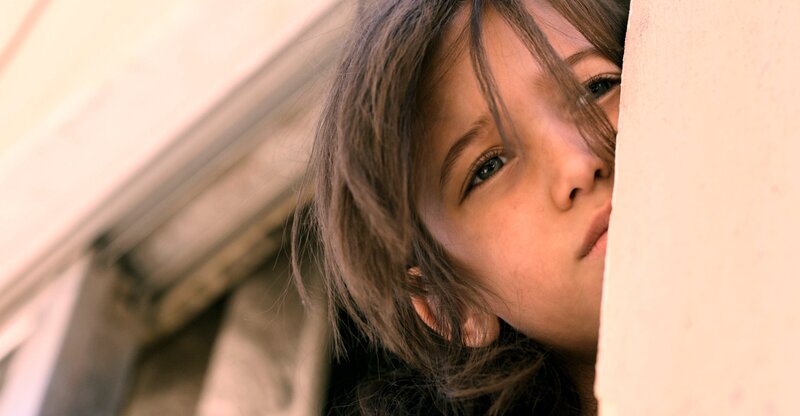Gefangen in einer von Krieg zerrütteten Welt, mit der Hoffnung, eines Tages auf dem Fußballfeld der Nachbarschaft spielen zu können, findet die achtjährige Tala Trost und Freiheit in einem verbotenen Fernseher. Doch dieser Fernseher bringt sie in ein Spiel um Leben und Tod. Tala schaut mutig und entschlossen aus dem Fenster (Aesha Balasem).Bild: © SWR/Filmakademie BW