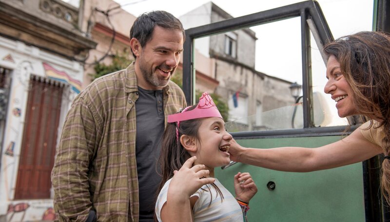 Maria (Christine Neubauer, re.) freundet sich mit ihrem Dolmetscher Diego (Carlos Lobo) und dessen Tochter (Margarita Mellicovsky) an.Bild: © ARD Degeto/Juan Angel Urruzola