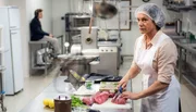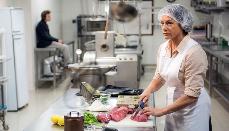 Die Wurstküche ist ihr Revier: Metzgermeisterin Maria (Christine Neubauer).Bild: © HR/Degeto/Juan Angel Urruzola