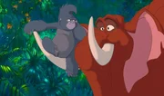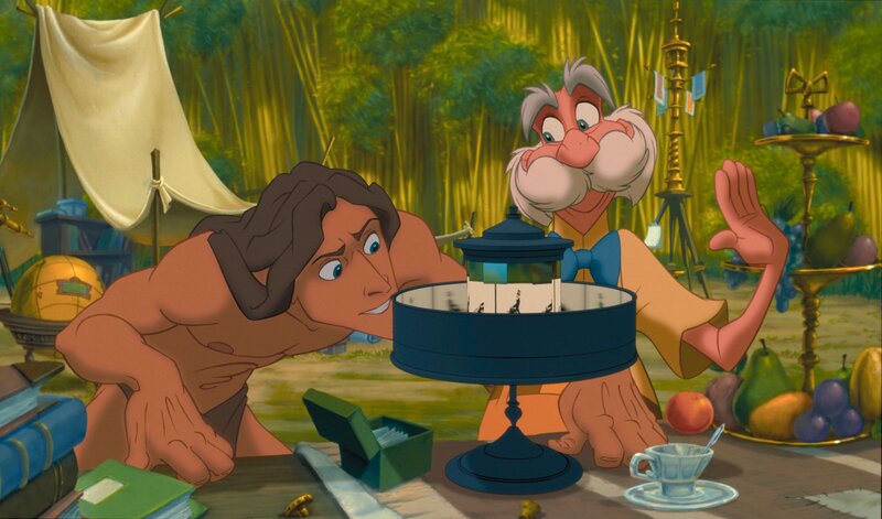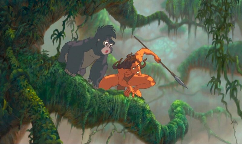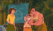 Nach einem Schiffsunglück strandet ein kleiner Knabe an der afrikanischen Küste. Das Gorillaweibchen Kala nimmt sich des schutzlosen Geschöpfes an und zieht es auf anstelle eines eigenen Jungtiers, das kürzlich verstarb. Der kleine Tarzan hat einen schweren Stand; Kalas Partner Kerchak, der Anführer der Gorillagruppe, kann mit dem blassen, haarlosen Geschöpf nichts anfangen, und die Jungtiere verspotten ihn wegen seiner vergleichsweise geringen Muskelkraft. Jahre später flitzt Tarzan (Tony Goldwyn) als junger Mann durch den Urwald, in Windeseile an Lianen schwingend und wie ein Surfer über das Astwerk gleitend. Der athletische Jüngling hat sich prächtig zum Herrn des Dschungels entwickelt. Sein kleines Paradies steht jedoch vor bewegten Zeiten. Gewehrschüsse hallen durch den Urwald, unter der Führung des schrulligen Forschers Archimedes Q. Porter (Nigel Hawthorne) ist eine kleine britische Expedition eingetroffen. Eines der Mitglieder, der Gorillajäger Mister Clayton, bedeutet für Tarzans Ersatzfamilie und Freunde grösste Gefahr. Und dann wäre da noch die Tochter von Professor Porter, Jane (Minnie Driver), die dem stolzen, auf solch ein bezauberndes Geschöpf völlig unvorbereiteten Dschungel-Adonis den Kopf verdreht. Anno 1930 räumte Edgar Rice Burroughs ein, dass sich seine Tarzan-Geschichte für einen Animationsfilm hervorragend eignen würde, nur müsse dieser ausgesprochen sorgfältig hergestellt werden, und zwar möglichst auf Disney-Niveau. Knapp siebzig Jahre später war es endlich so weit: Die 48. Verfilmung des Tarzan-Stoffes (nur Dracula ist beliebter) ist die erste Zeichentrick-Adaption, und die Hoffnung des 1950 verstorbenen Verfassers des Abenteuerklassikers wurde mit diesem vergnüglichen, atemberaubend animierten und mit Hits von Phil Collins bereicherten Zeichentrickfilm erfüllt. Einmal mehr konnte Disney eine Reihe gestandener Hollywood-Grössen dazu verpflichten, den Figuren ihre Stimme zu leihen; in der deutschen Synchronfassung sind Heike Makatsch, Michael Brennicke, Detlef Buck, Eva Mattes und Anke Engelke zu hören.