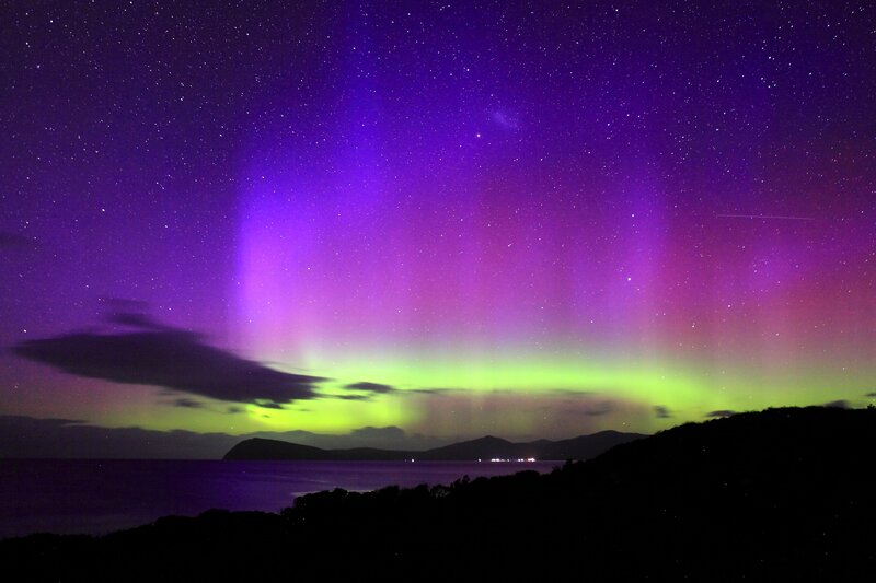 Die südliche Aurora erhellt den Nachhimmel über Bruny Island mit einem spektakulären Farbenspiel.Bild: © Terra Mater / Matt Hamilton