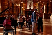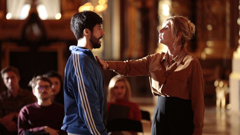 Antoine Zerkaoui als MB14 (Mohamed Belkhir, l.) und Madame Loyseau (Michèle Laroque, r.) mit OrchesterBild: © WDR/Firstep/Darka Movies/Studiocanal/C8 Films