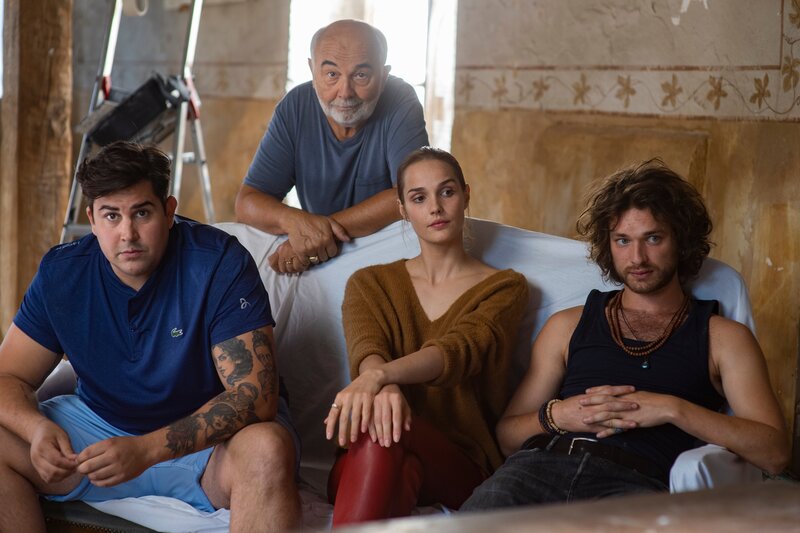 (v.li.): Philippe Bartek (Victor Artus Solaro), Francis Bartek (Gérard Jugnot), Stella Bartek (Camille Lou), Alexandre Bartek (Louka Méliava).Bild: © ORF/Telepool/Arnaud Borrel