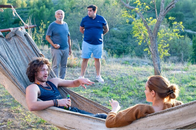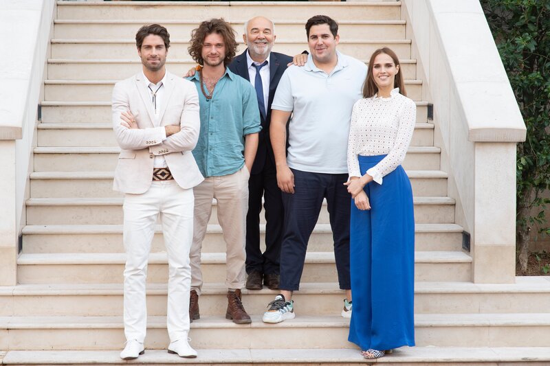 (v.li.): Juan Carlos (Tom Leeb), Alexandre Bartek (Louka Méliava), Francis Bartek (Gérard Jugnot), Philippe Bartek (Victor Artus Solaro), Stella Bartek (Camille Lou).Bild: © Apollo Films