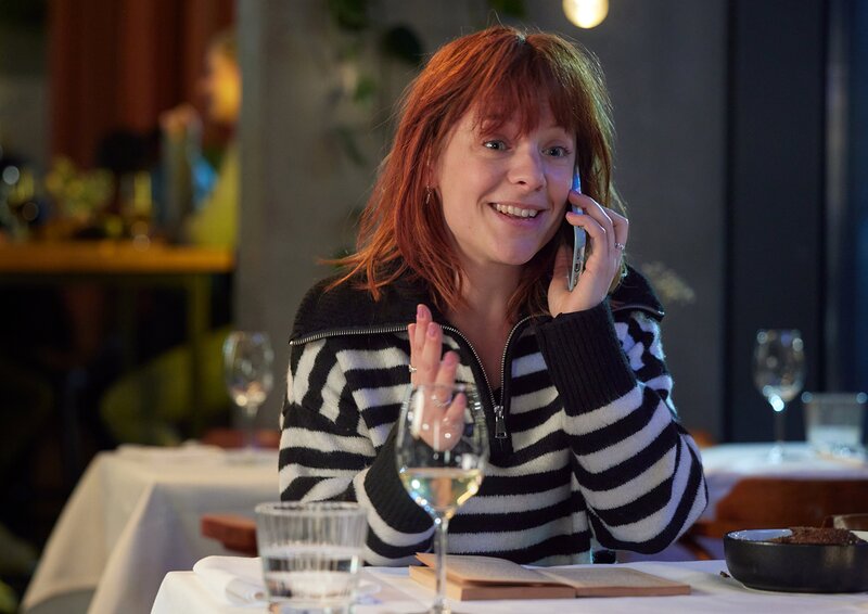Lana (Sarah Bannier) ist begeistert von dem Beziehungsende von ihrer besten Freundin Zoë und freut sich auf das gemeinsame Singledasein.Bild: © ZDF und Martijn van Gelder