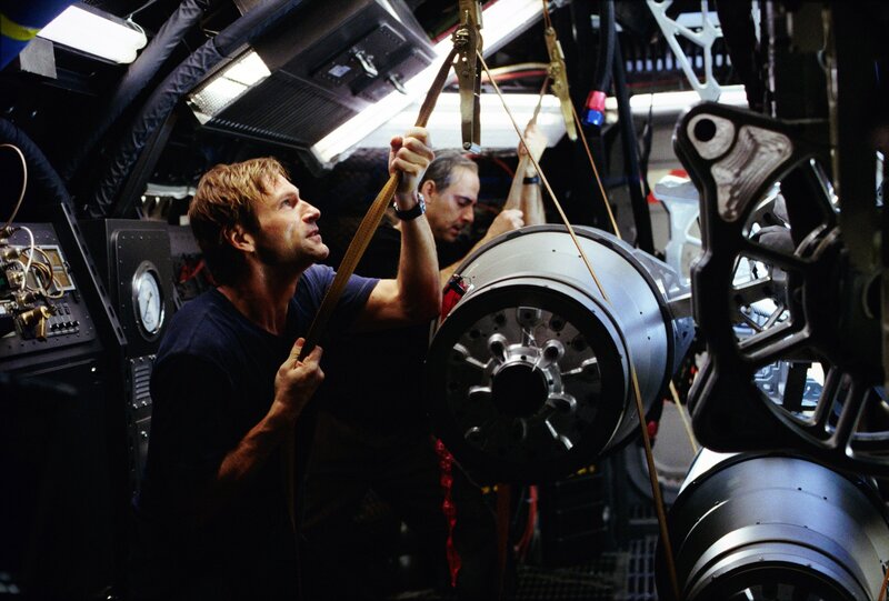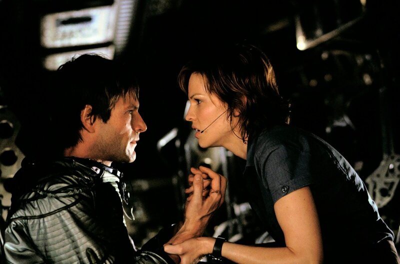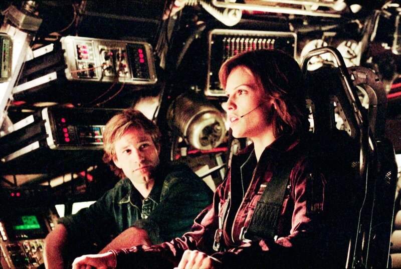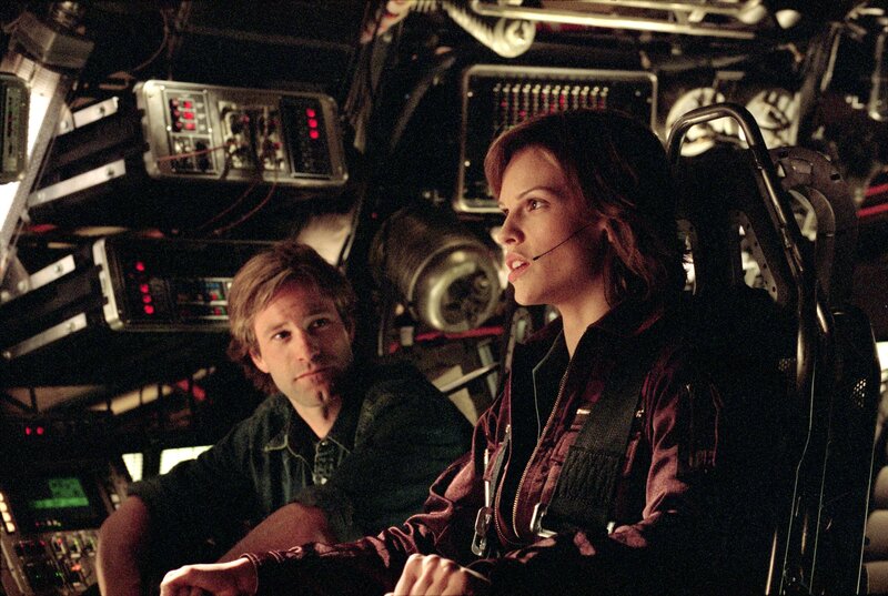 Auf Dr. Keyes (Aaron Eckhart, l.) und Pilotin Childs (Hilary Swank, r.) wartet eine nervenaufreibende Reise zum inneren Kern unseres Planeten ...Bild: © Kabel Eins