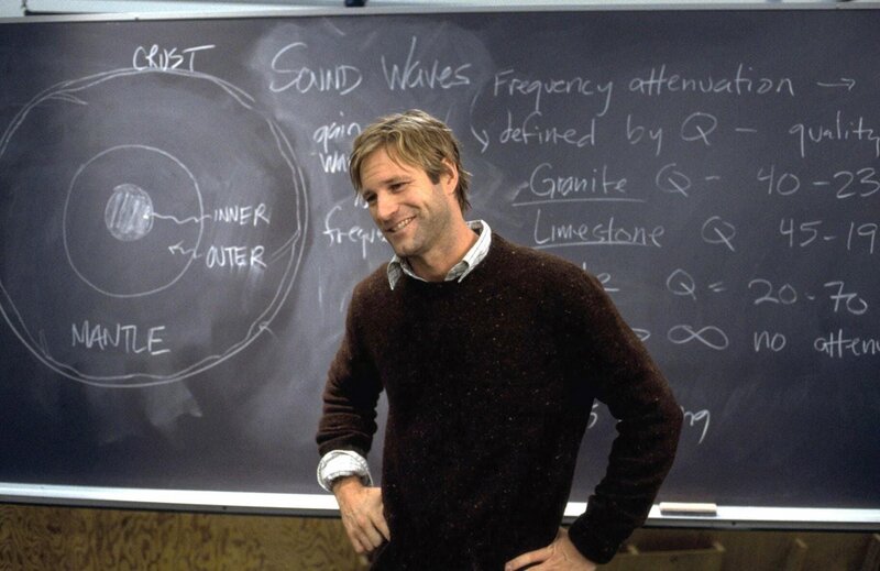 Professor Keyes (Aaron Eckhart, l.) erhält die Aufgabe, ein Team von "Terranauten" auszubilden, das dem unheilvollen Stillstand des Magmas im Erdinnern mit Nuklearsprengmitteln beikommen soll ...Bild: © Paramount Pictures