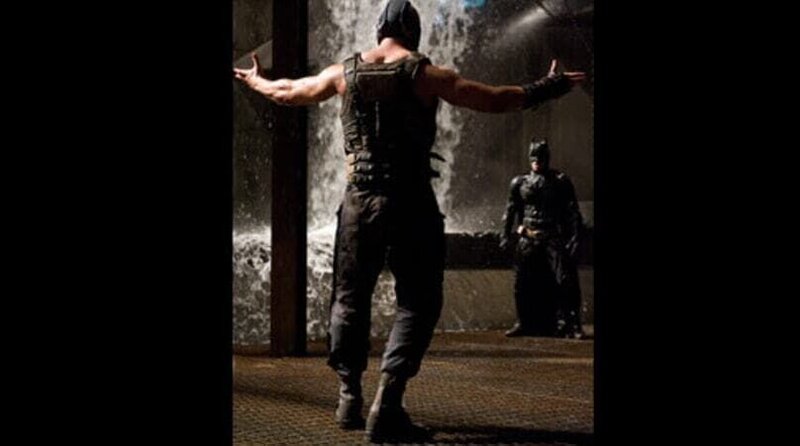 Als vermeintlicher Gefangener schleust sich Bane in ein Flugzeug der CIA ein. Zuerst scheint der grossmäulige CIA-Agent die Situation unter Kontrolle zu haben. Einstellung für Einstellung wird der maskierte Bane immer mächtiger: Der Agent wird mit geschickt gewählten Kamerawinkeln kleiner, Bane immer grösser und mächtiger in Szene gesetzt. Als die Szene endet, stürzt das kleine Reich des Agenten zerbrochen vom Himmel, und Bane bleibt als gottähnlicher Übermensch im Himmel zurück.