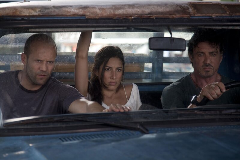 Lee Christmas (Jason Statham, li.), Sandra (Giselle Itié) und Barney Ross (Sylvester Stallone) haben Probleme.Bild: © ALTA VISTA PRODUCTIONS, INC.