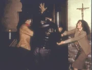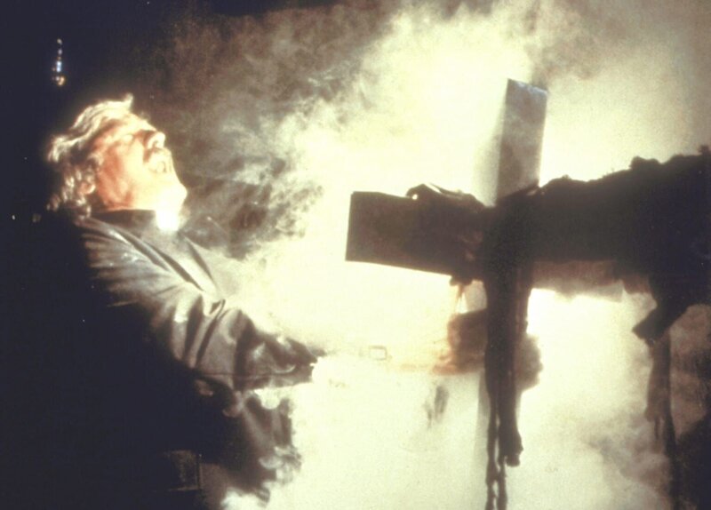 Pater Malone (Hal Holbrook) versucht, mit einem Kreuz die Zombies zurückzuhalten. Doch plötzlich fängt das Kreuz an zu schmelzen ...Bild: © Kabel Eins