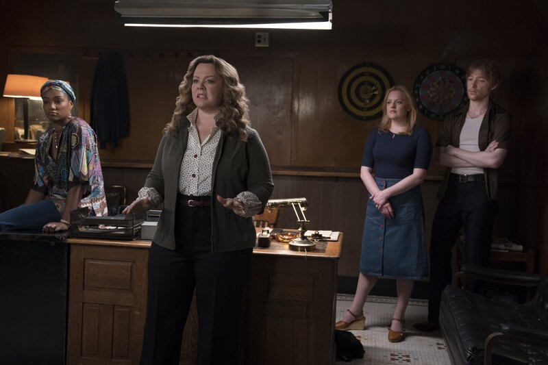 L - R: Tiffany Haddish als Ruby O'Caroll, Melissa McCarthy als Kathy, Elisabeth Moss als Claire Walsh, Domhnall Gleeson als Gabriel O'Malley