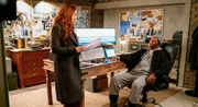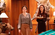 Anna (Maggie Q, r.) und Moodys Haushälterin Claudia (Caroline Loncq, l.) überraschen Annas Mentor zum 70. Geburtstag mit einem Kuchen.Bild: © Jichici Raul / ZDF