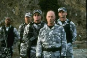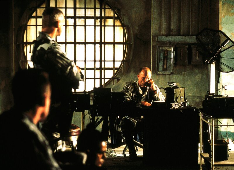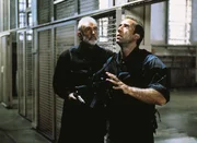 Stanley Goodspeed (Nicolas Cage, vorne r.) hat es geschafft. Er kann John Mason (Sean Connery, vorne l.) zur Mithilfe überreden, um die Sprengsätze auf "The Rock" unschädlich zu machen ...