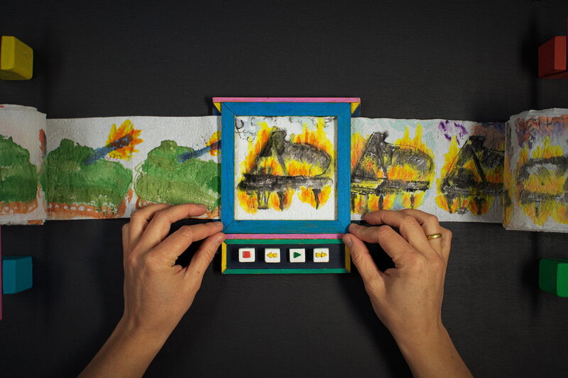 Eine Geschichte, inspiriert von Bachs zeitloser Musik, erzählt auf einem Schneidetisch und gemalt auf sechs Rollen WC-Papier. Die stimmungsvolle, selbstreflexive Animation der Künstlerin Anna Samo geht der Frage nach, wie man in dieser geopolitisch schwierigen Zeit künstlerisch tätig sein kann.