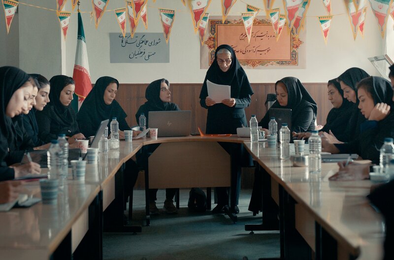 Tarlan (Maryam Boubani) liest eine eindrucksvolle Erklärung auf dem Treffen der Lehrergewerkschaft vor.Bild: © NDR/ArtHood Films