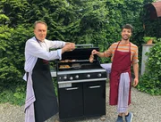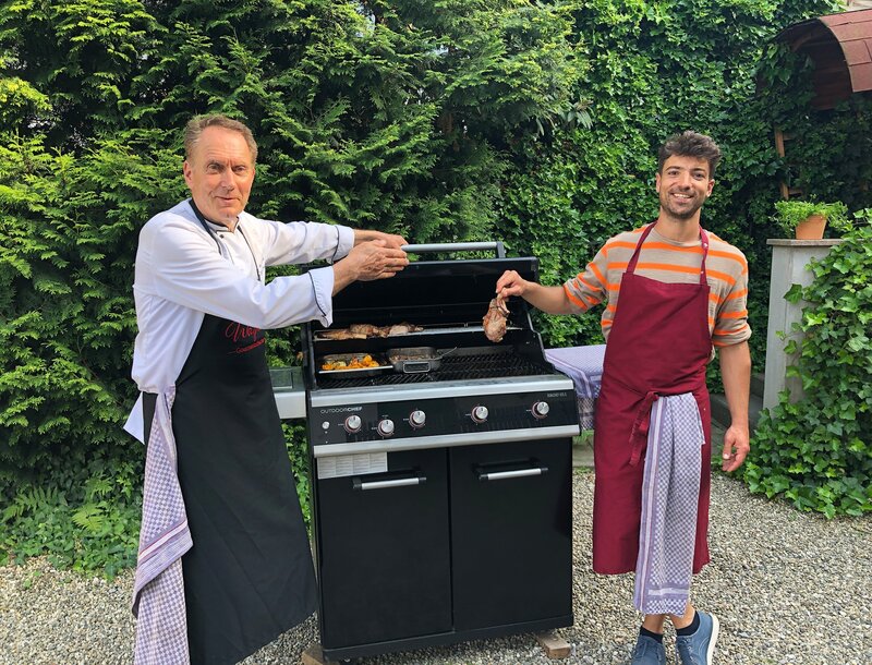 Wer Campen will muss Grillen können. Moderator Ramon Babazadeh mit Klaus Wagner in der Grillschule in Sasbachwalden.Bild: © SWR/Daniel Richter