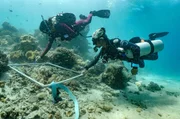 Prof. Dr. Karen Edyvane und Studenten der Universität Dili sind auf der Suche nach Blauwalen. Sie ziehen nur wenige Meter vor der Küste Timor-Lestes vorbei – perfekt um die Tiere zu erforschen.Bild: © NDR/Claudia Schmitt