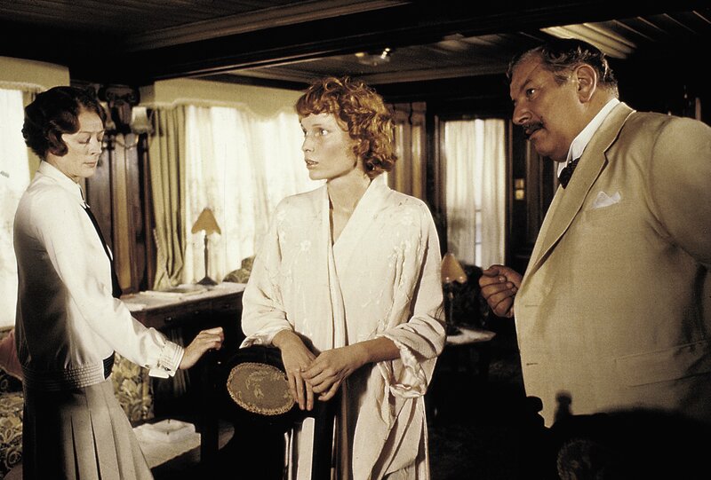 Sinon Doyle (Simon MacCorkindale,l.), Jaqueline De Bellefort (Mia Farrow) und Linnet Ridgeway (Lois Chiles,r.).Bild: © ORF/Studiocanal