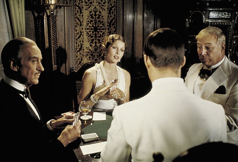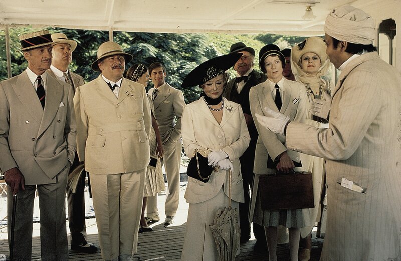 David Niven (Col. Race), George Kennedy (Andrew Pennington), Peter Ustinov (Hercule Poirot), Lois Chiles (Linnet Ridgeway), Simon MacCorkindale (Simon Doyle), Bette Davis (Mrs. Van Schuyler), Jack Warden (Dr. Ludwig Bessner), Maggie Smith (Miss Bowers), Angela Lansbury (Mrs. Salome Otterbourne), I.S. Johar (Manager der Karnak).Bild: © TVP S.A.