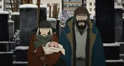 Gin kümmert sich mit liebevoller Fürsorge um Baby Kiyoko, während ihn schmerzvolle Erinnerungen an seine Vergangenheit einholen.Bild: © Satoshi Kon, Mad House and Tokyo Godfathers Committee / ZDF