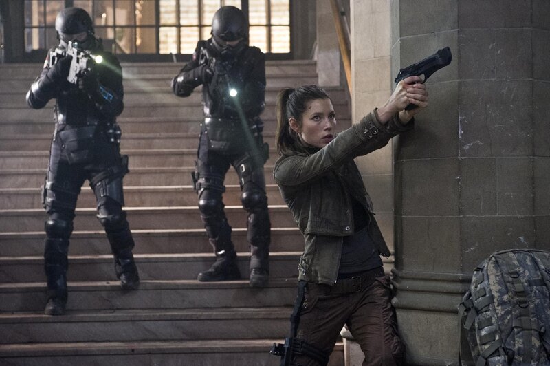 Kämpft gegen die skrupellose Regierung: die Rebellenkämpferin Melina (Jessica Biel, r.) ...Bild: © SKY / Columbia Pictures Industries, Inc.
