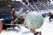 König Odysseus (Sean Bean, Mitte) schließt sich dem mächtigen König Agamemnon in seinem Eroberungszug gegen Troja an.Bild: © RTL II
