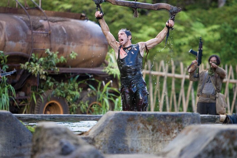 Im Dschungel von Vietnam angekommen, sind die Schauspieler (v.l.n.r.: Ben Stiller, Robert Downey Jr., Nick Nolte, Jack Black, Brandon T. Jackson, Jay Baruchel) nicht nur auf sich selbst gestellt, sondern geraten auch prompt an die örtliche Drogenmafia ...Bild: © RTL Zwei