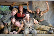 Für den Vietnamepos "Tropic Thunder" hat sich Actionstar Tugg Speedman (Ben Stiller, M.) seine quotenträchtigsten Kollegen ins Boot geholt: Jüngling Kevin Sandusky (Jay Baruchel, l.), Rapper Alpa Chino (Brandon T. Jackson, 2.v.l.), Kirk Lazarus (Robert Downey Jr., 2.v.r.) und Komiker Jeff Portnoy (Jack Black, r.). Das Chaos kann beginnen ...Bild: © MG RTL D / Merie Weismille