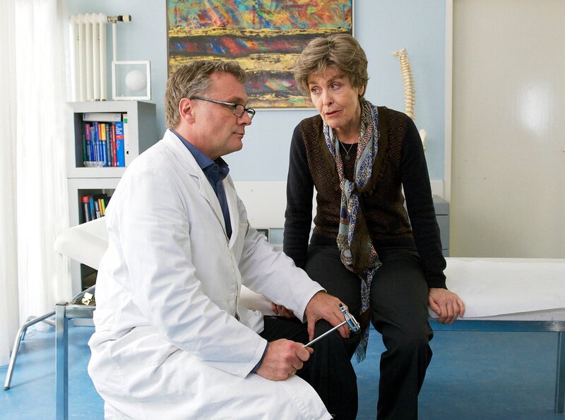 Der Arzt Martin (Bernhard Schir) ahnt nicht, dass Hannah (Thekla Carola Wied) ihm in geheimer Mission auf den Zahn fühlen will.; ARD Degeto TÜR AN TÜR, am Samstag (05.10.24) um 15:30 Uhr im ERSTEN. Der Arzt Martin (Bernhard Schir) ahnt nicht, dass Hannah (Thekla Carola Wied) ihm in geheimer Mission auf den Zahn fühlen will. © ARD Degeto/NDR/Marc Meyerbroeker, honorarfrei - Verwendung gemäß der AGB im engen inhaltlichen, redaktionellen Zusammenhang mit genannter Degeto-Sendung und bei Nennung "Bild: ARD Degeto/NDR/Marc Meyerbroeker" (S2). ARD Degeto/Programmplanung und Presse, Tel: 069/1509-335, degeto-presse@degeto.deBild: © ARD Degeto/NDR/Marc Meyerbroeker