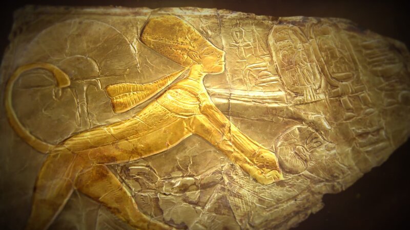 Spektakulär: die prächtigen Goldbleche aus dem Grabschatz. Der Restaurator Christian Eckmann und sein Team haben sie in jahrelanger Kleinarbeit aus tausenden Fragmenten zusammengepuzzelt.Bild: © ZDF/Christian Eckmann
