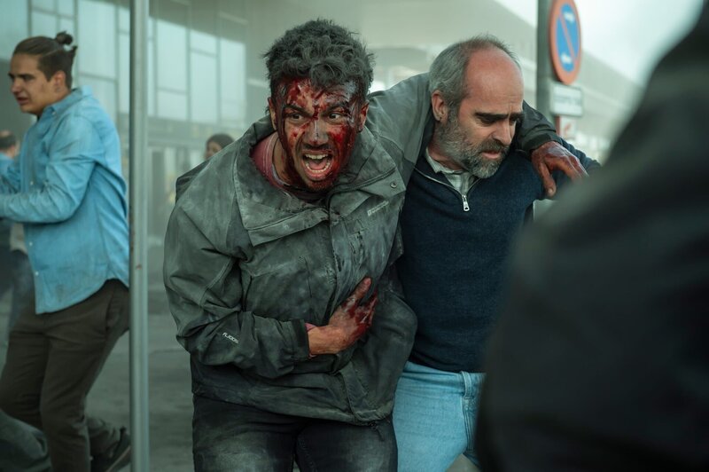 Der Taxifahrer Santiago (Luis Tosar, r.) rettet nach einem Terroranschlag am Flughafen den Verletzten Hamza (Nourdin Batan, l.).Bild: © ZDF und Nicolás de Assas