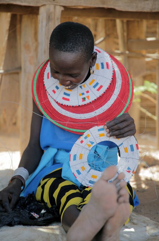 Die typischen Perlen-Kragen können gut und gerne acht Kilo wiegen. Die Frauen legen ihn nur zum Schlafen ab.Bild: © SWR/Sina Hutt