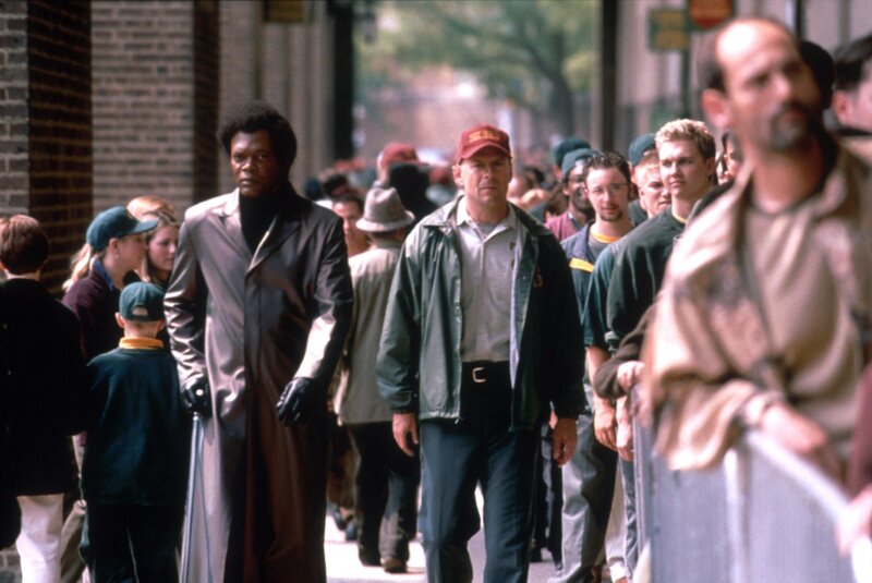 Wachmann Dunne (Bruce Willis, l.) weiß nicht, warum er niemals krank ist und warum gerade er das verheerende Zugunglück ohne eine einzige Schramme überlebt hat. Da trifft er den mysteriösen, an Glasknochen leidenden Elijah Price (Samuel L. Jackson, r.), der behauptet, David Dunn sei unzerbrechlich. Und er sagt, er wisse auch warum ...