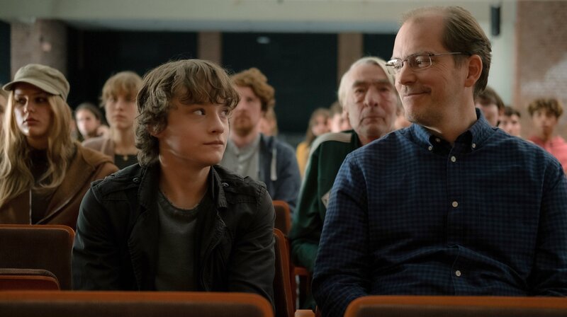 Stolzer Papa: Fred (Godehard Giese, re.) beim Auftritt von seinem Sohn Phil (Claude Heinrich, li.).Bild: © ARD Degeto/Nadja Klier