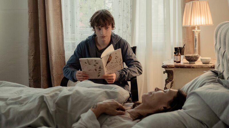 Am Sterbebett: Phil (Claude Heinrich, hinten) liest Karla (Iris Berben, vorne) vor.Bild: © ARD Degeto/Nadja Klier