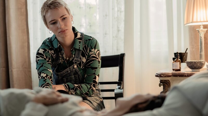 Rona (Zoë Valks, li.) am Bett der todkranken Karla (Iris Berben, re.).Bild: © ARD Degeto/Nadja Klier