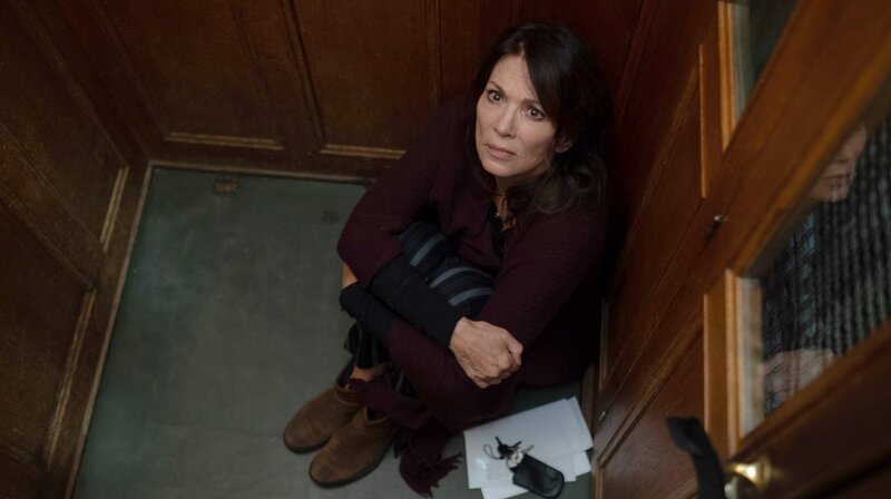 Karla (Iris Berben) steckt im Aufzug fest.Bild: © ARD Degeto/Nadja Klier